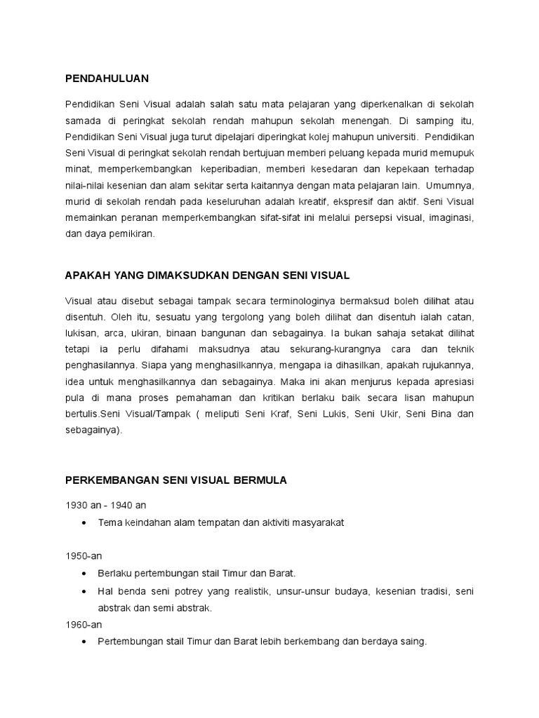 Pendidikan Seni Visual Apa Itu Psv Pdf